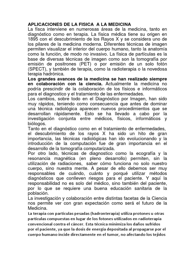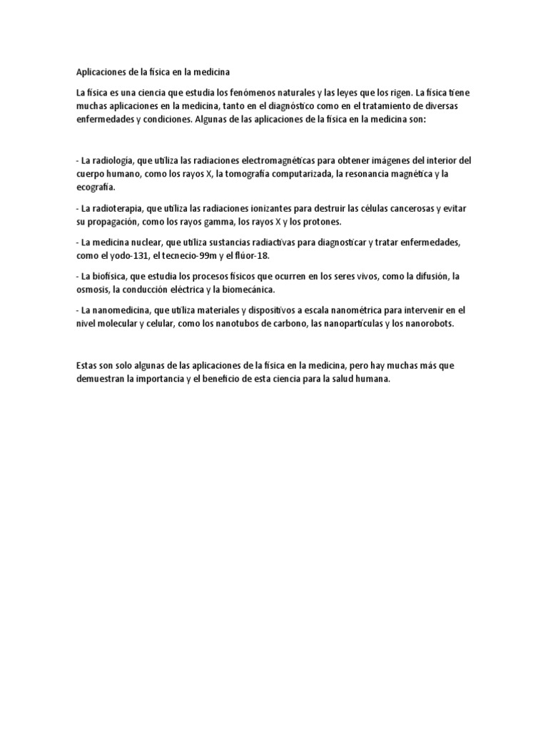 Aplicaciones de La Fisica A La Medicina PDF Medicina Física
