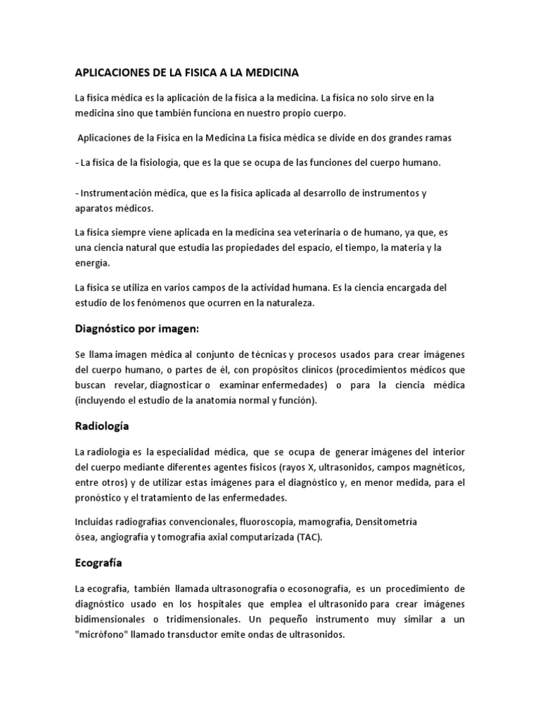 Aplicaciones de La Fisica A La Medicina PDF Ultrasonido médico Física Médica