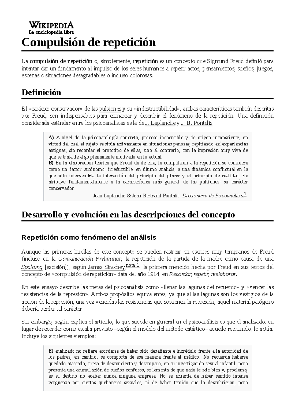 Compulsión de repetición Compulsión de repetición La compulsión de repetición o, simplemente
