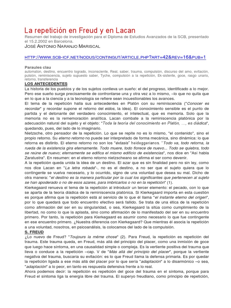 La Repetición en Freud PDF Jacques Lacan Mente inconsciente