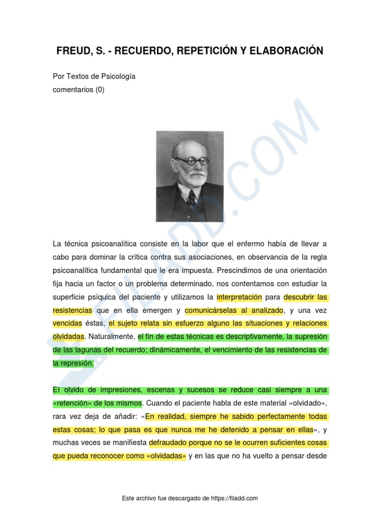 Freud Recuerdo Repeticion y Elaboracion PDF Psicoanálisis Sicología