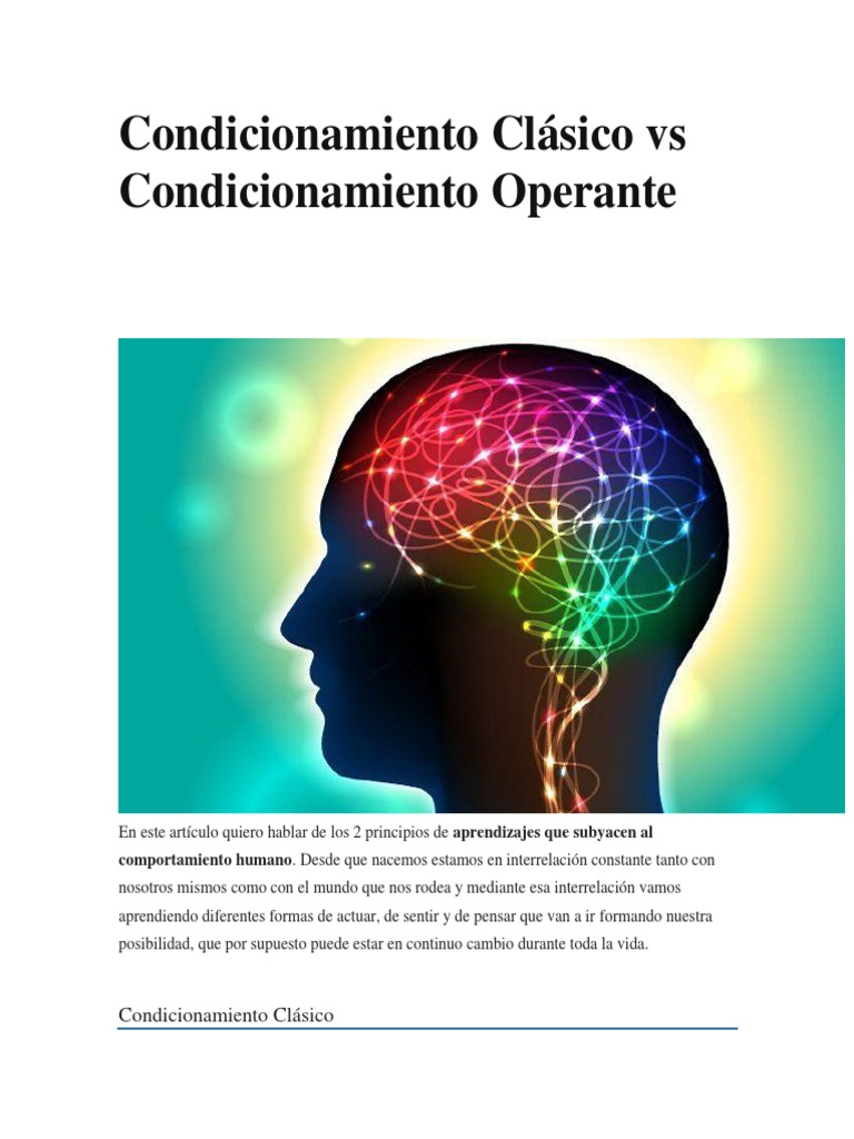 Además, presentaremos ejemplos concretos para ilustrar este concepto y lo compararemos con el condicionamiento operante. Historia y evolución del condicionamiento. El condicionamiento clásico es una forma de aprender mediante asociaciones que fue descrito por primera vez por el fisiólogo Ivan Pávlov a finales del siglo XIX. Antes de.