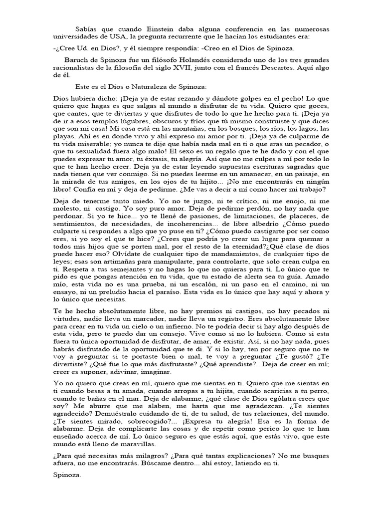 El Dios de Spinoza PDF Panteísmo Albert Einstein