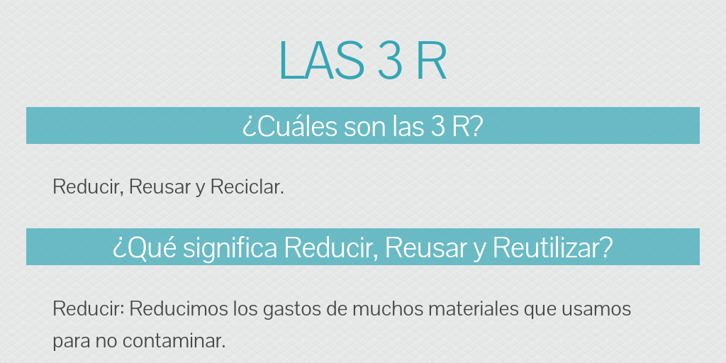 Las 3 R son una guía práctica que busca fomentar el consumo responsable y la gestión adecuada de los residuos. A continuación, te explicamos en qué consiste cada una de ellas: Reducir: esta R se refiere a la disminución del consumo de recursos naturales y la generación de residuos. Para lograrlo, es necesario adoptar hábitos más.