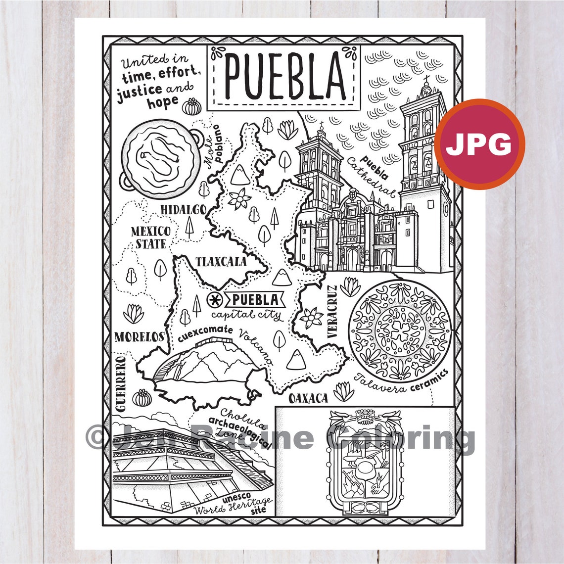 Puebla Coloring Page Mexico State Estados De Mexico Flag Etsy