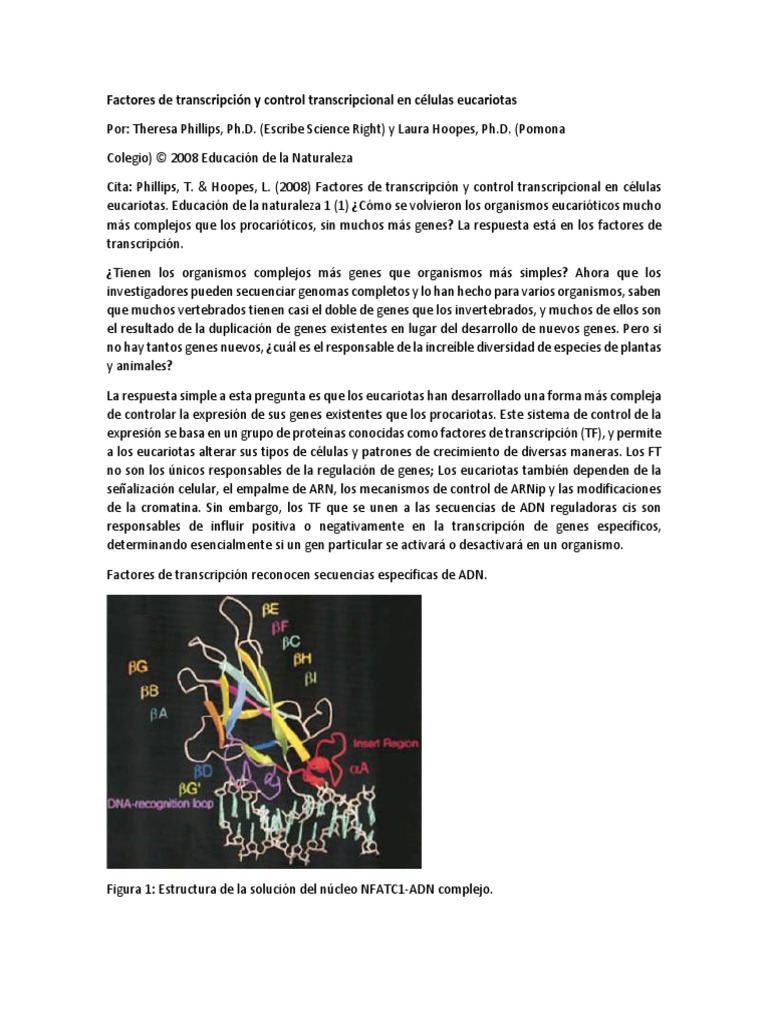 Factores de Transcripción y Control Transcripcional en Células Eucariotas Factor de