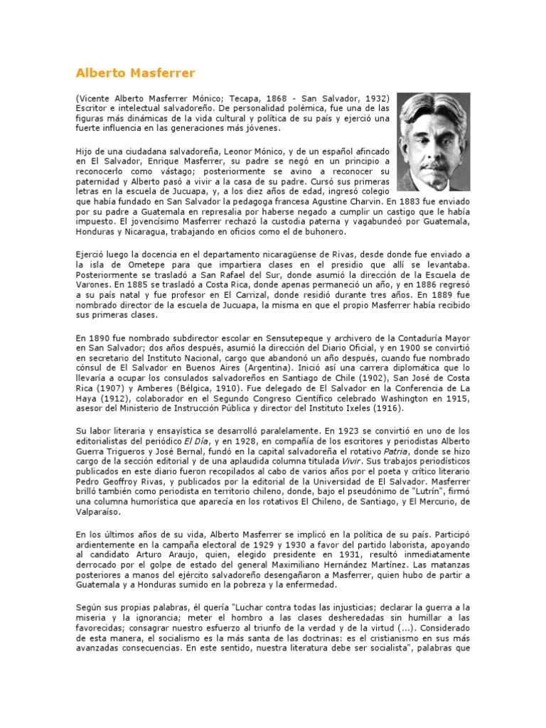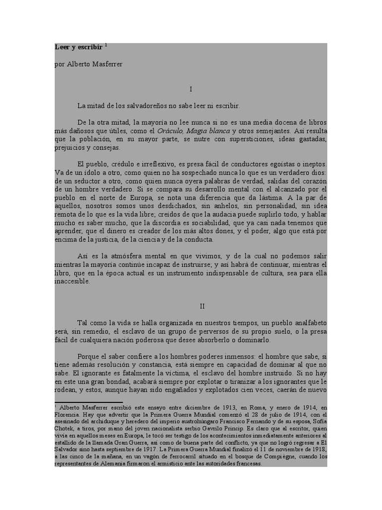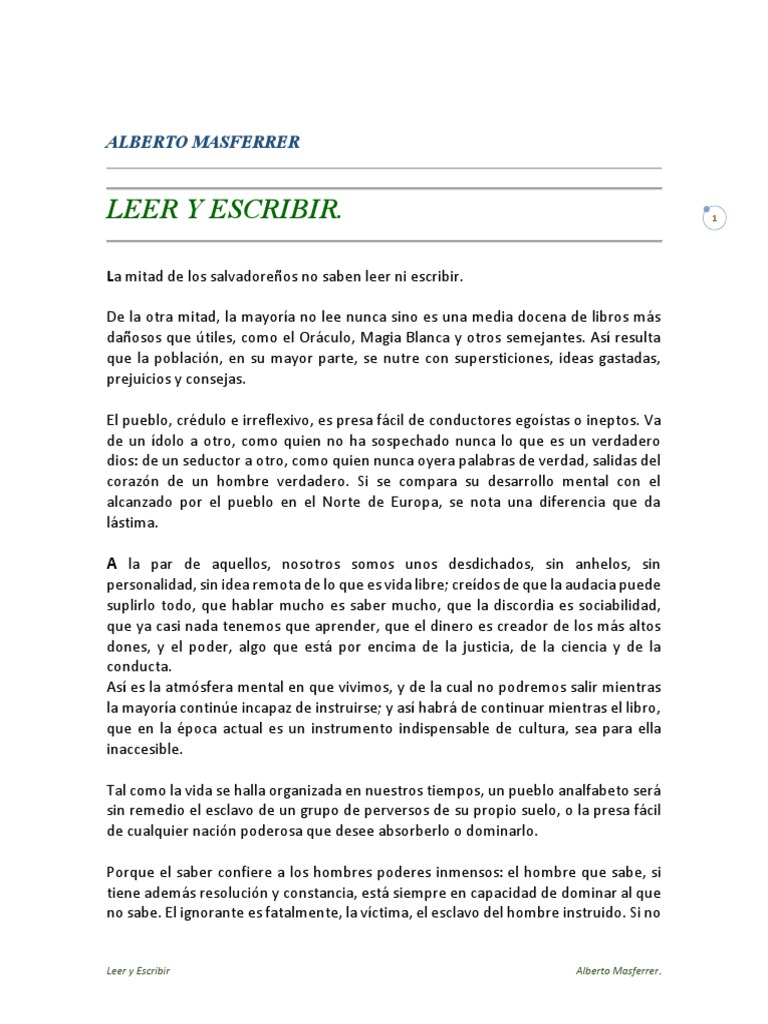 Leer y Escribir Alberto Masferrer PDF PDF El Salvador Verdad