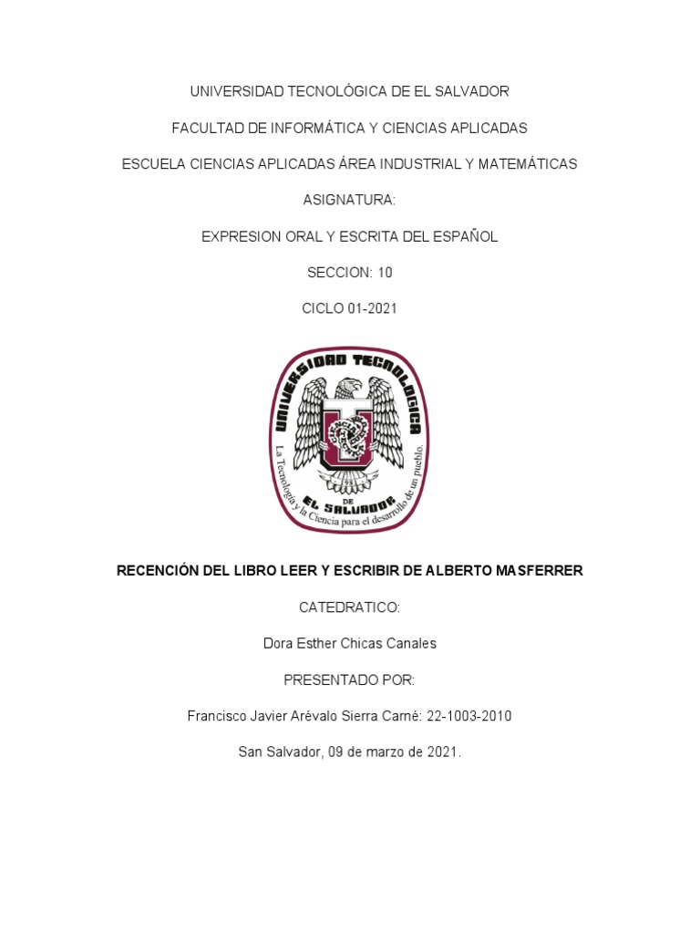 Leer Y Escribir Alberto Masferrer Resumen