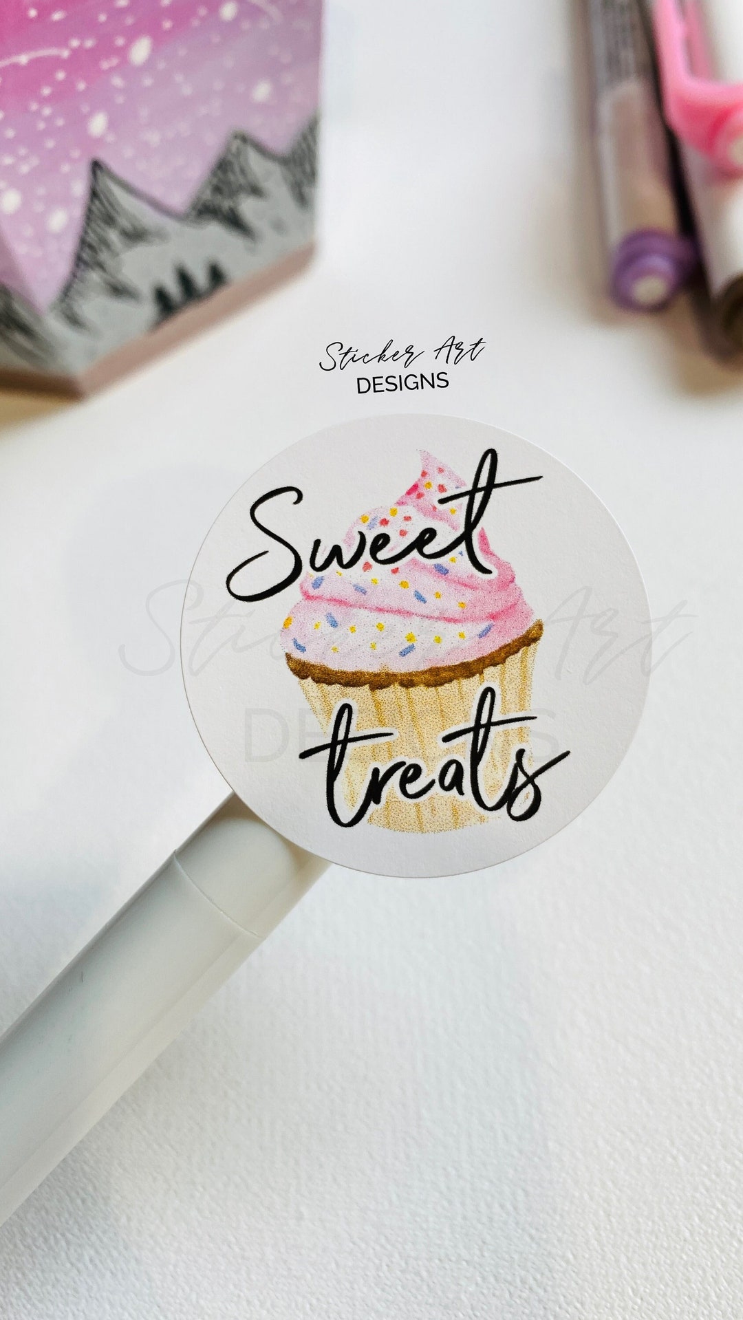 16 etiquetas de dulces, pegatinas de postres, etiquetas de negocios de cupcakes, pegatina de
