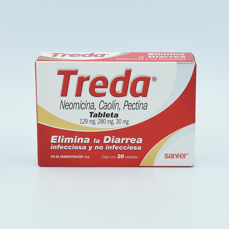 Treda 129mg/280mg/30mg, 20 Tabletas (Neomicina, Caolín, Pectina) Ver detalles. Treda 129mg/280mg/30mg, 20 Tabletas. Código de artículo 65978.. requiere receta médica que cumpla con los requisitos legales vigentes y es necesario presentarla previamente para que el pedido sea entregado.