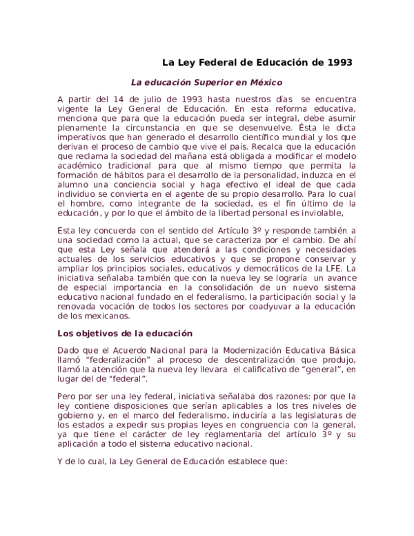 (DOC) Resumen La Ley Federal de Educacion de 1993 Noe Rivera H Academia.edu