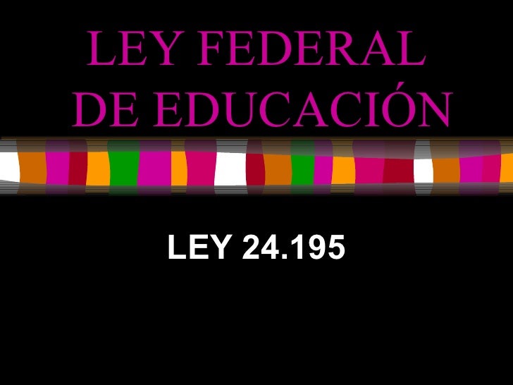 Ley Federal de Educación (Argentina) La Ley Federal de Educación N.º 24.195 fue una legislación argentina que regulaba el derecho de enseñar y aprender en todo el territorio nacional. 1 Fue sancionada el 14 de abril de 1993 durante la primera presidencia de Carlos Menem y derogada en 2006 mediante la Ley de Educación Nacional N° 26.206 .