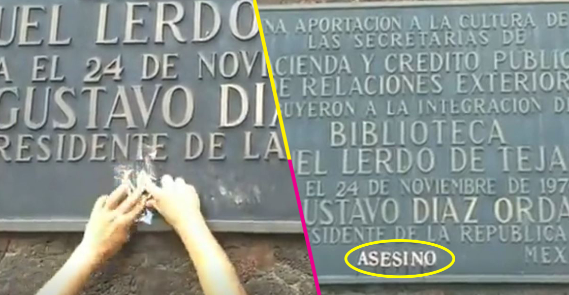 Agregan la palabra "asesino" a placa de Gustavo Díaz Ordaz en Centro Histórico