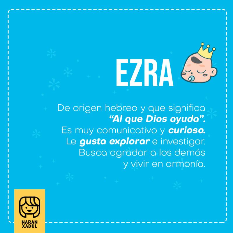 February 12, 2024. El nombre Ezra tiene su origen en la Biblia y proviene de la palabra hebrea "Ezrá", que significa "al que Dios ayuda". Ezra es un personaje bíblico importante mencionado en el Antiguo Testamento. Su nombre tiene un significado profundo y representa la creencia en la ayuda divina.