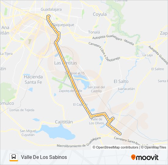 La tarifa del viaje de la línea ATEQUIZA (Valle De Los Sabinos) TransBus El Salto es de aproximadamente $14.00. Los precios pueden cambiar en función de varios factores. Para obtener más información sobre los costos de los tickets de TransBus El Salto, consulta la aplicación Moovit o el sitio web oficial de TransBus El Salto.
